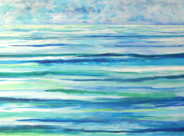 Door het project heen, heb ik tijdens het schilderen van de vele "waterlandschappen" ervoor gekozen mijn formaat aan te passen. Door het formaat te vergroten (70 x 100 cm), wordt de toeschouwer gedwongen om meer met de ogen te dwalen over de schildering. En dat is precies datgene dat ik wil: het gevoel geven dat je aan zee staat, met je ogen de zee aftastend naar een punt waarop je je kunt focussen. Totdat je tot de ontdekking komt dat dat punt er niet is... |